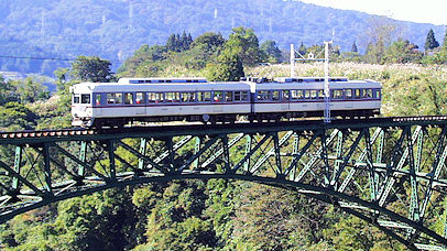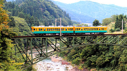 ![]() 千垣橋梁を渡る14760系特急宇奈月温泉行き |