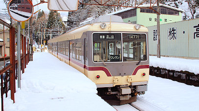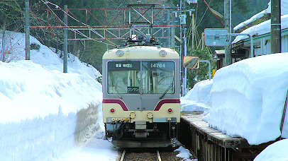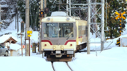 ![]() 到着する14760系14771+14772普通電鉄富山行き |