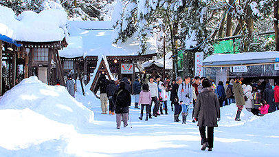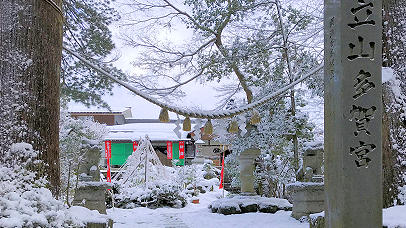 ![]() 元旦の雄山神社前立社壇拝殿前 |