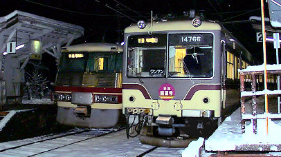 ![]() 行き違いする17480と14760系電鉄富山行き |