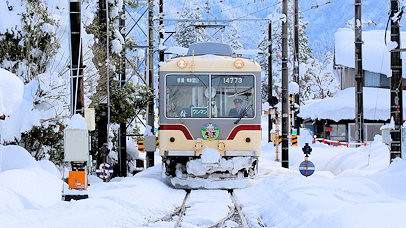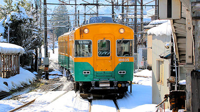 ![]() 上滝線ホームと電鉄富山行き列車 |