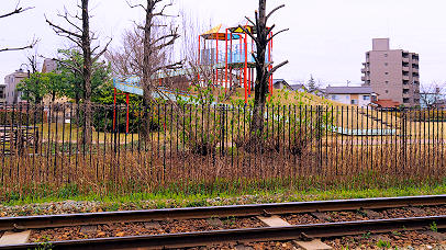 ![]() 稲荷町駅側の市道踏切付近からホーム |