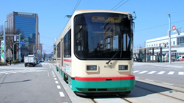 電鉄富山駅エスタ前を発車した8003大学前行き 2018/03/12 撮影