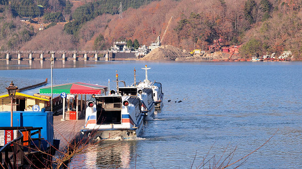 遊覧船乗船場から堰堤取水口側