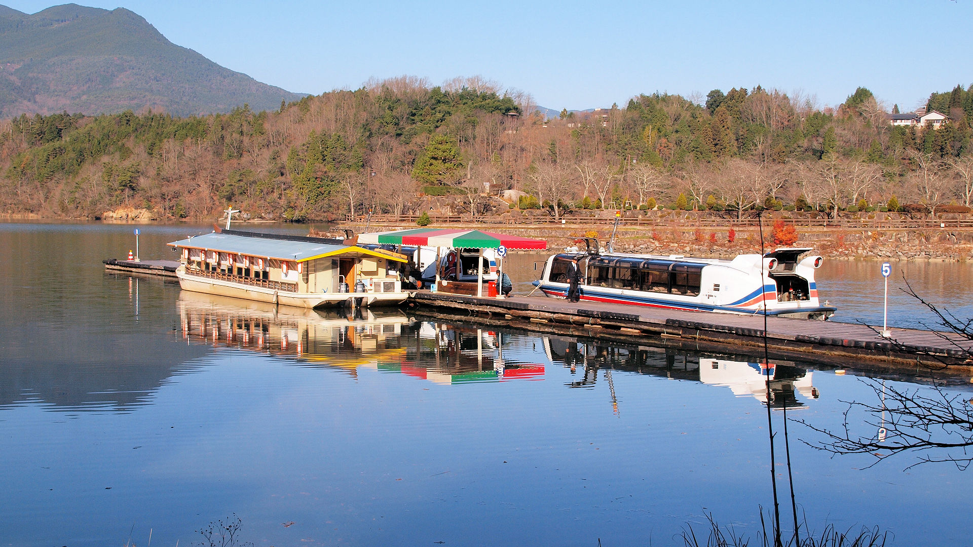 左岸の恵那峡国際ホテル(現:湯快リゾート)裏から遊覧船乗船場