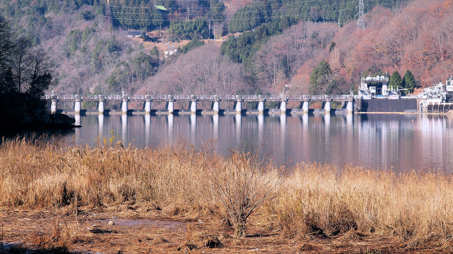 左岸の恵那峡国際ホテル(現:湯快リゾート)裏から大井ダム堰堤