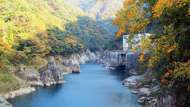富山市神通川片路峡北陸電力庵谷発電所付近の紅葉 2009/10/31 撮影