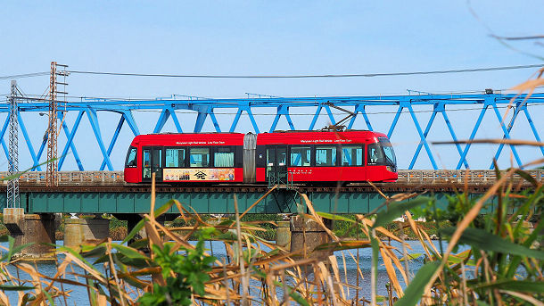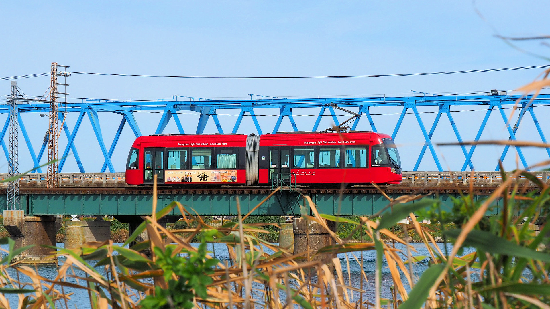 万葉線庄川橋梁を渡るMLRV1001越ノ潟行き
