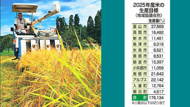 ついて、2024年産米の目標より3291トン多い17万6134トンに