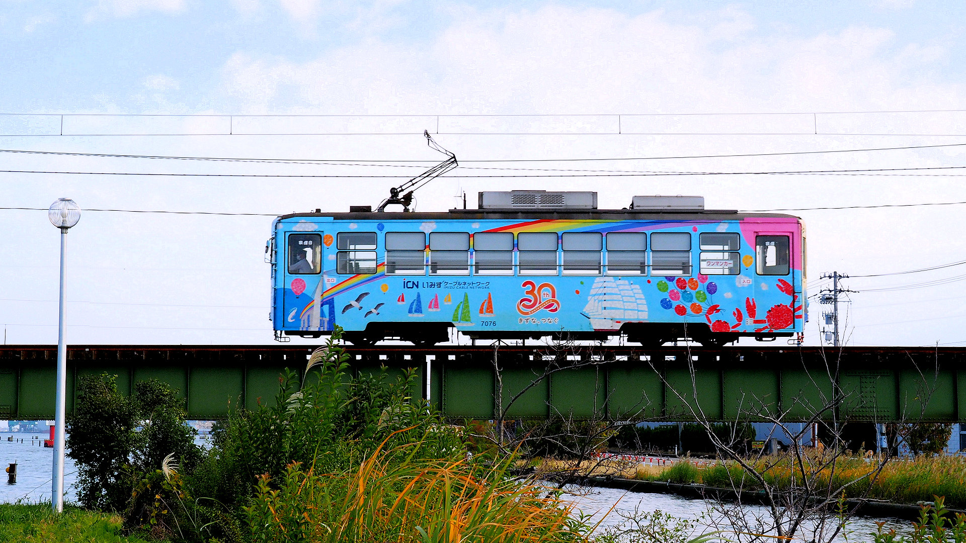新湊港線内川橋梁を渡る7076越ノ潟行き 2024/11/25 撮影