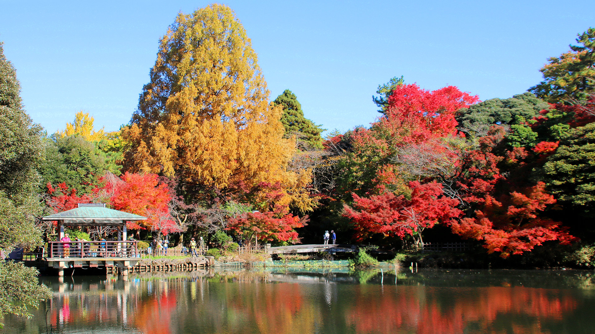 高岡古城公園本丸朝陽の滝前から中の島の紅葉 2024/11/25 撮影