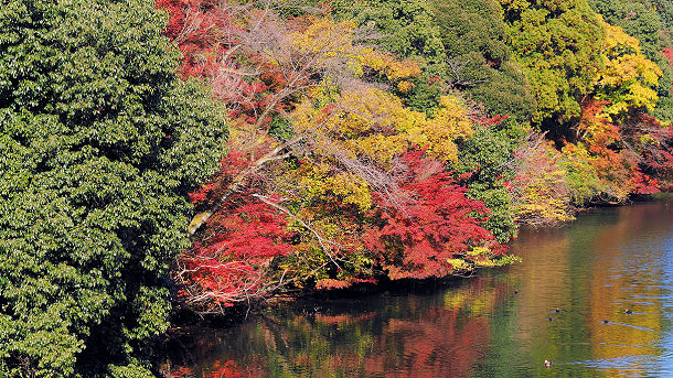 高岡古城公園の博物館前から本丸の紅葉 2024/11/25 撮影