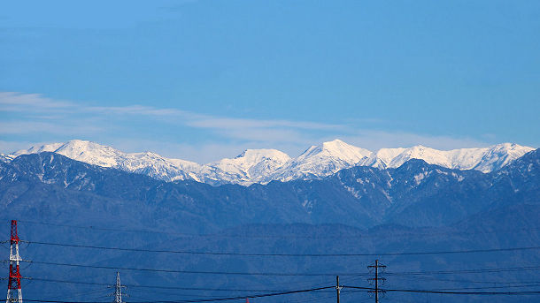 射水市小杉総合体育館付近から冠雪した白馬連峰 2024/11/13 撮影