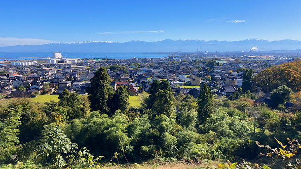 氣多神社境内の展望台から白馬連峰の冠雪 2024/11/09 撮影