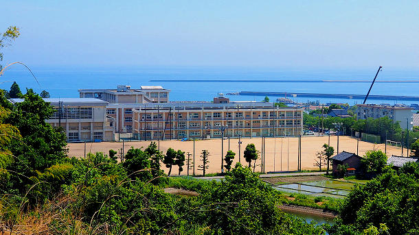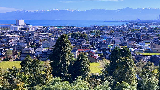 左端に母校の富山県立伏木高校が見える