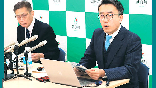ウニノミクスの石田晋太郎社長(富山市生まれ)が朝日町役場で記者会見