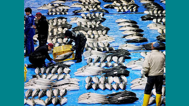 富山県の氷見漁港で12月28日、「ひみ寒ぶり」が2394本水揚げさ