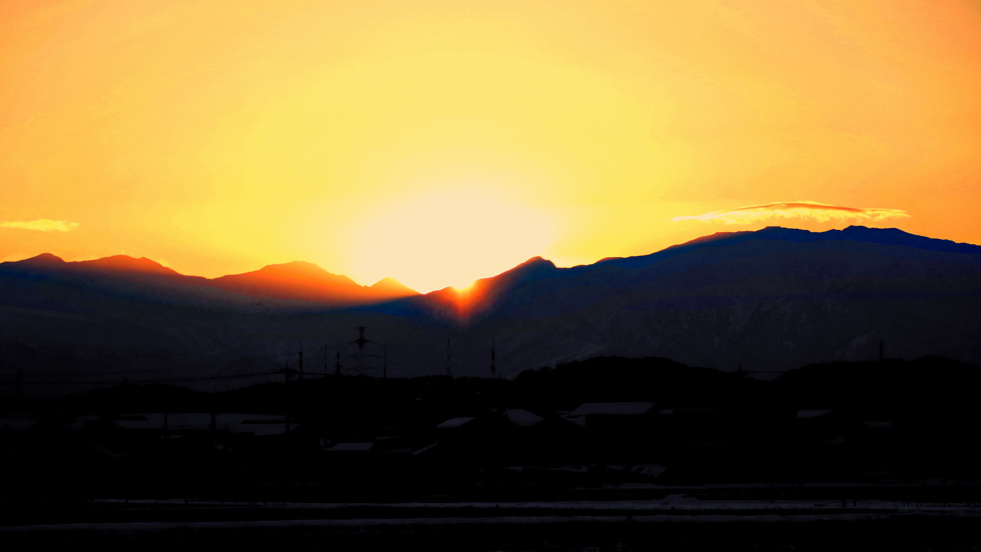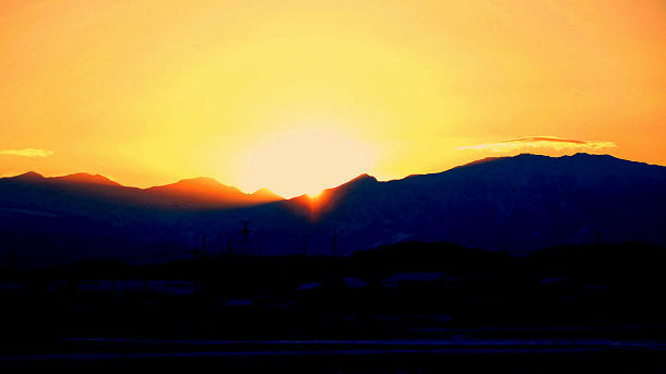 射水市総合体育館裏からスゴの頭−鍬崎山間の初日の出