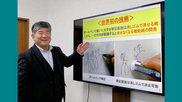 キ消去機能紙」を開発した。既に普及している「消せるボールペン」とは違