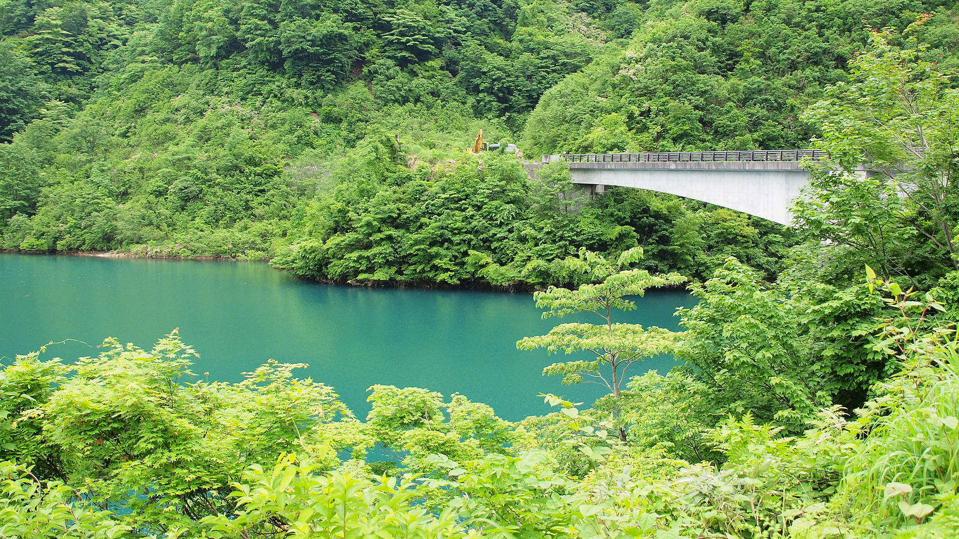 富山県営境川ダムの桂湖上流部から桂橋