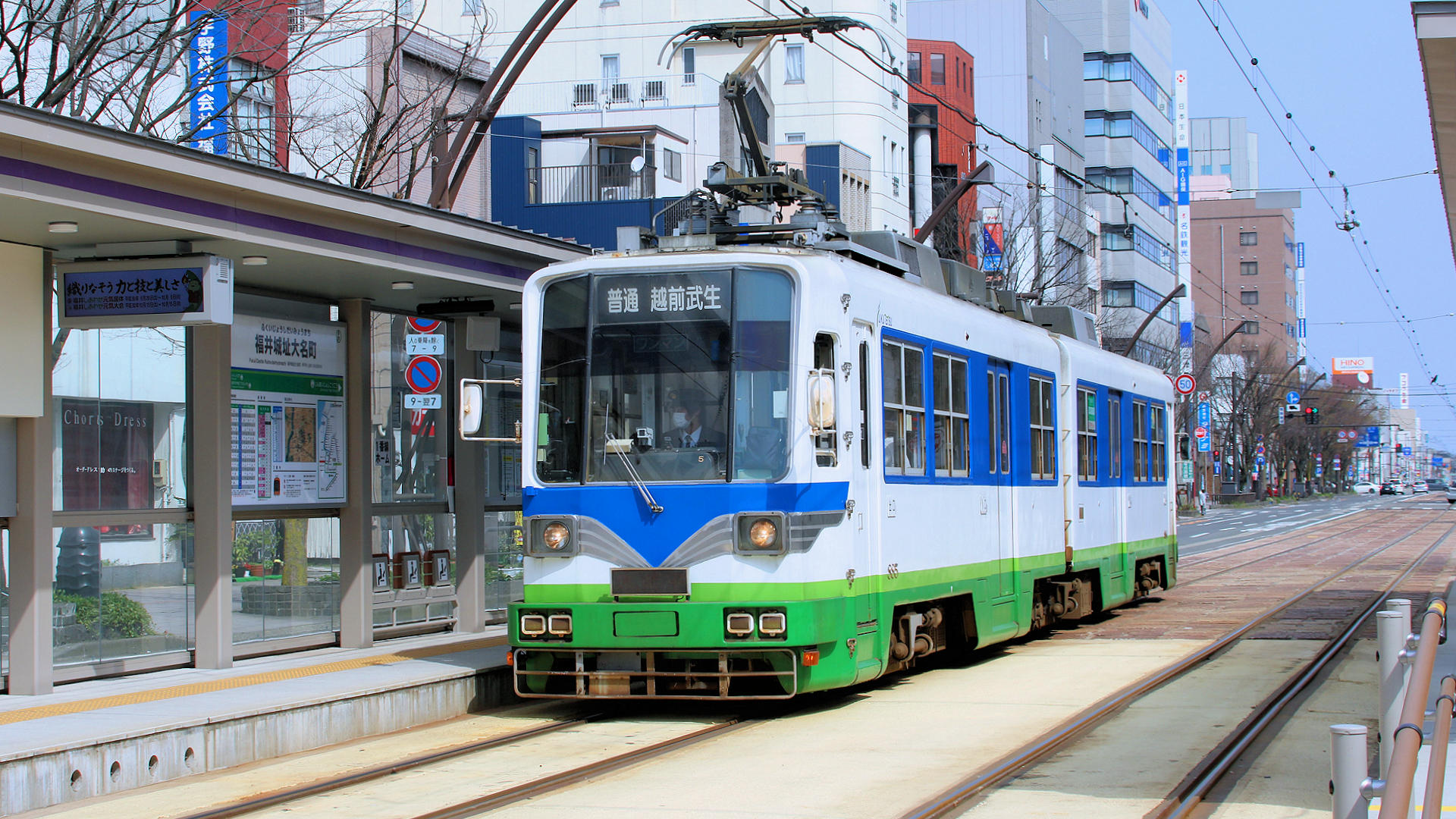 福井城址大名町駅に停車中の884+885越前武生行き 2018/04/01