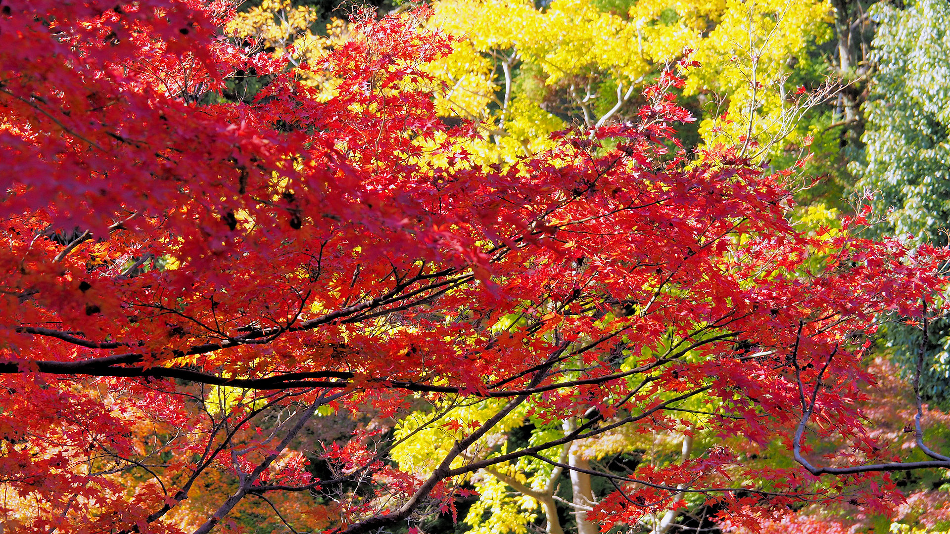 高岡古城公園の動物園前からイロハモミジの紅葉 2024/11/25 撮影