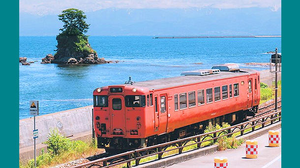 雨晴海岸沿いを走る氷見線。新車両に「新型ハイブリッド気動車」を導入す