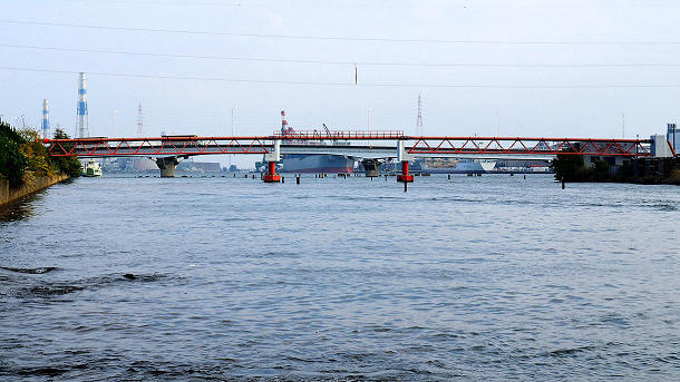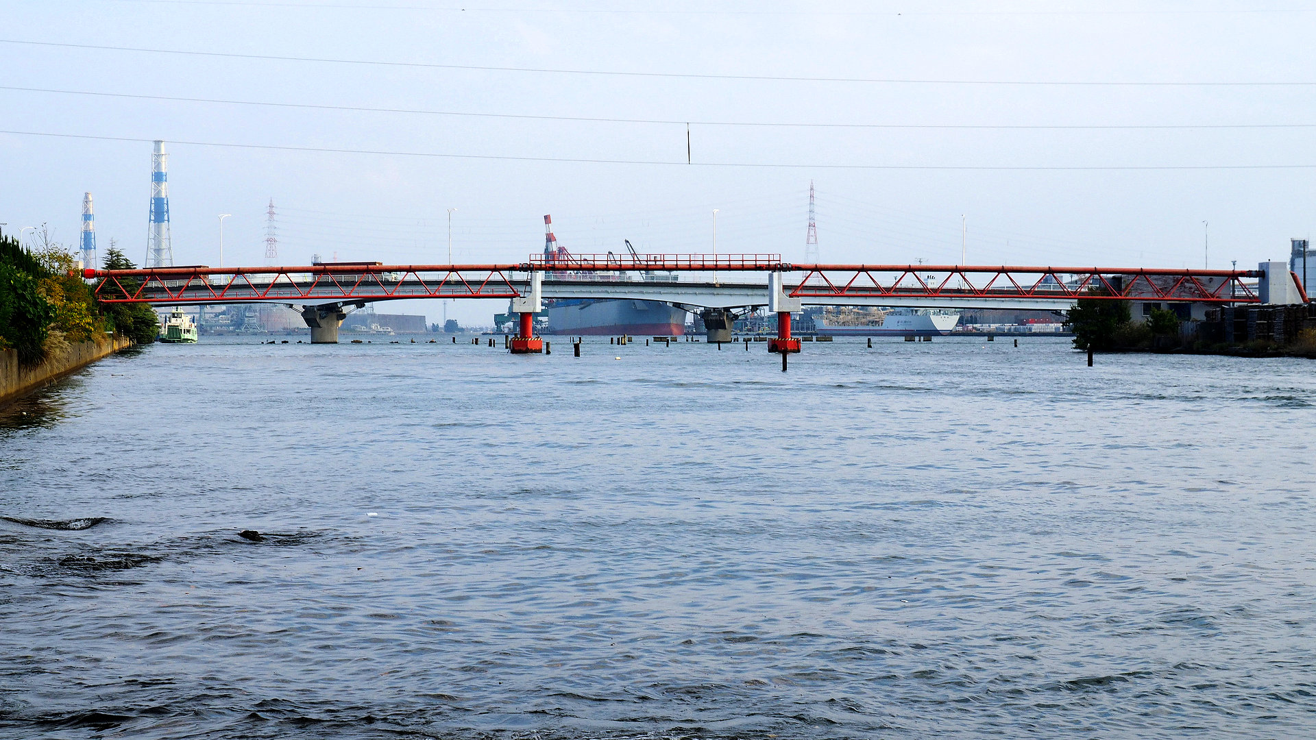 射水市・新湊地区内川の万葉線橋梁下から富山新港側 2024/11/13