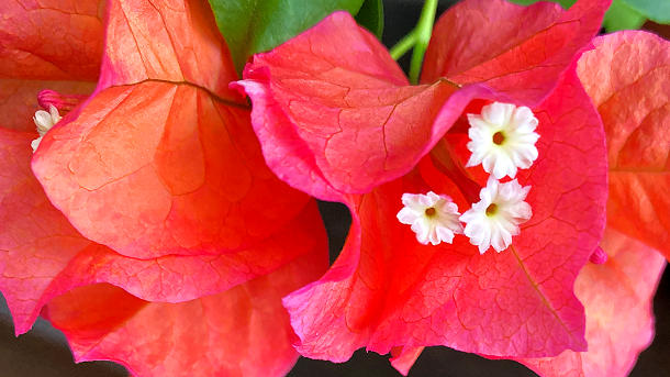 12月末に苞葉が色付いてから1カ月以上楽しめる。ブーゲンビリアの苞葉