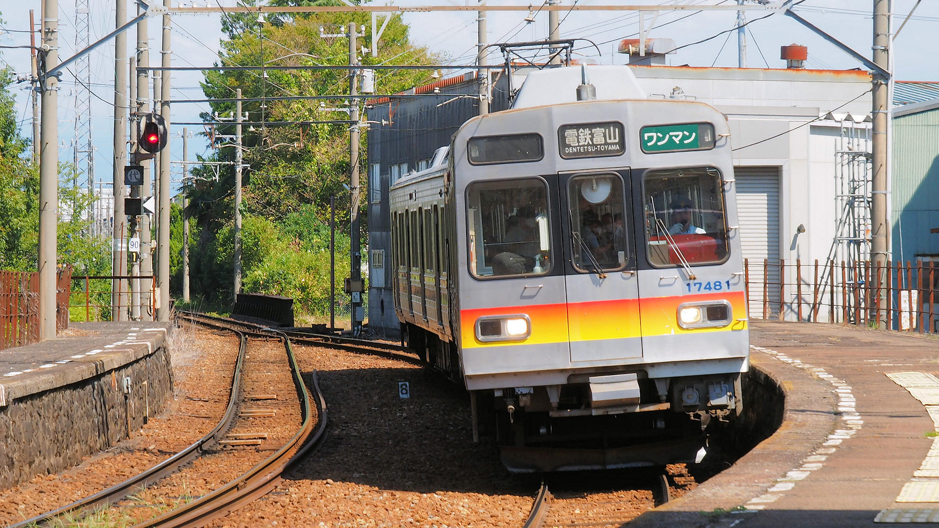 本線稲荷町駅に到着する17481+17482電鉄富山行き