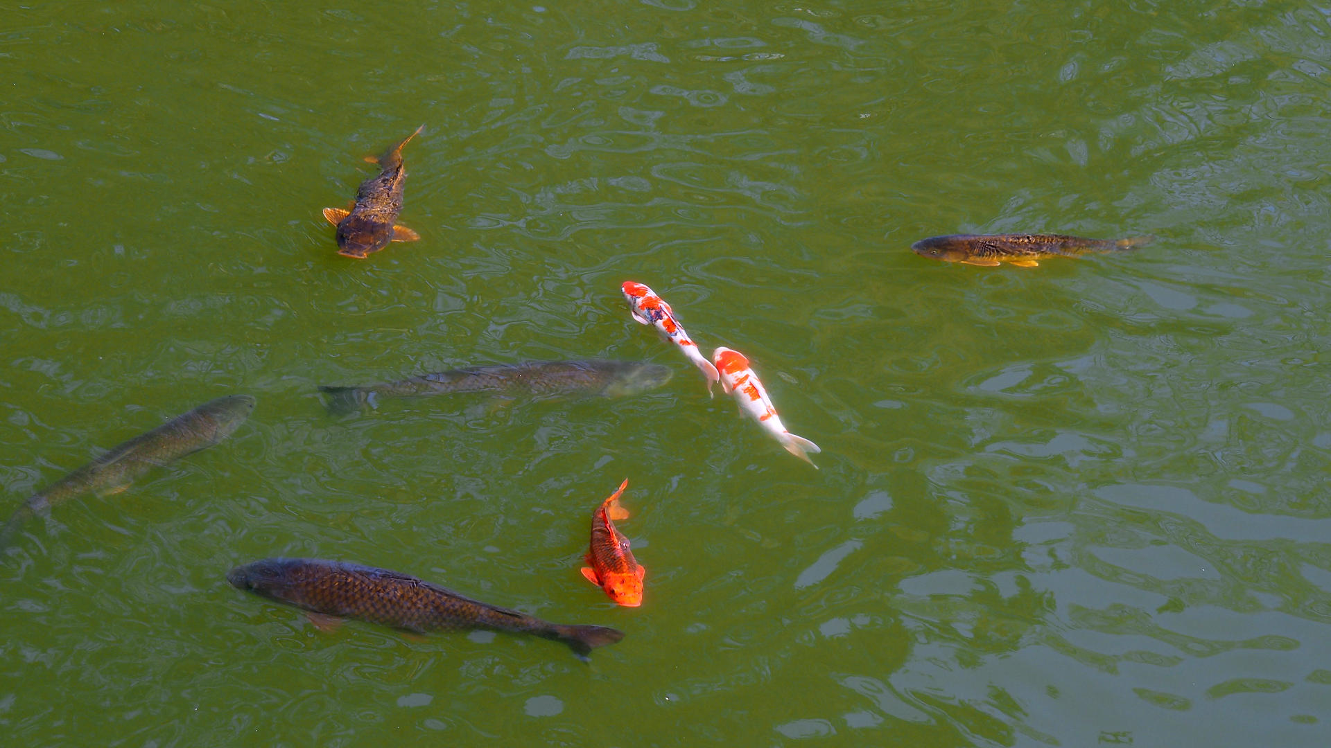 高田城址公園極楽橋から内堀の錦鯉 2023/03/30 撮影
