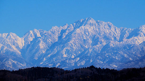 射水市黒河の富山県民公園太閤山ランドスポーツ広場から立山連峰 剱岳