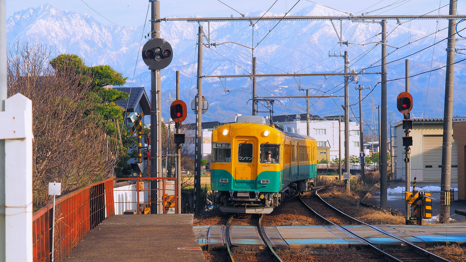 越中舟橋駅に到着する10031+10032電鉄富山行き