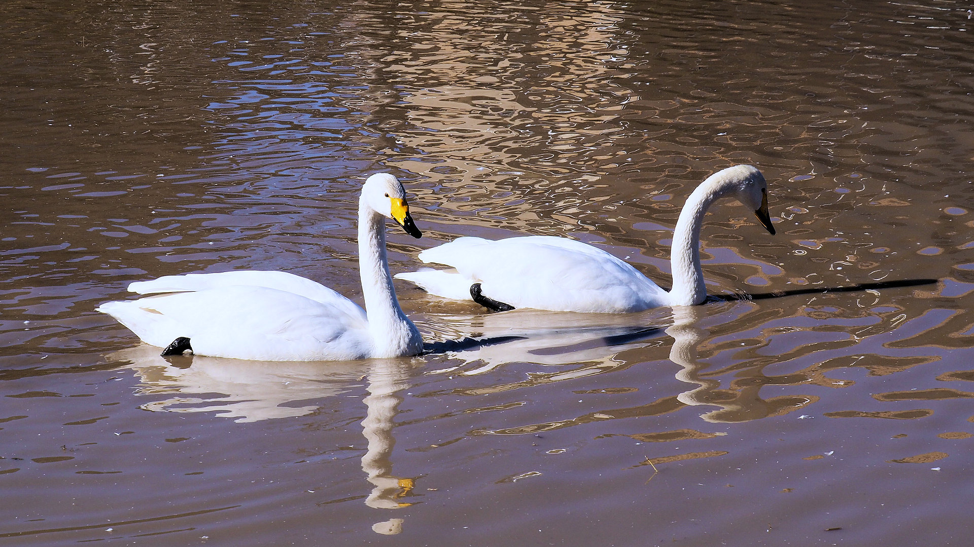 射水市青井谷にある白鳥飛来地石畑池に隣接する水田のオオハクチョウ