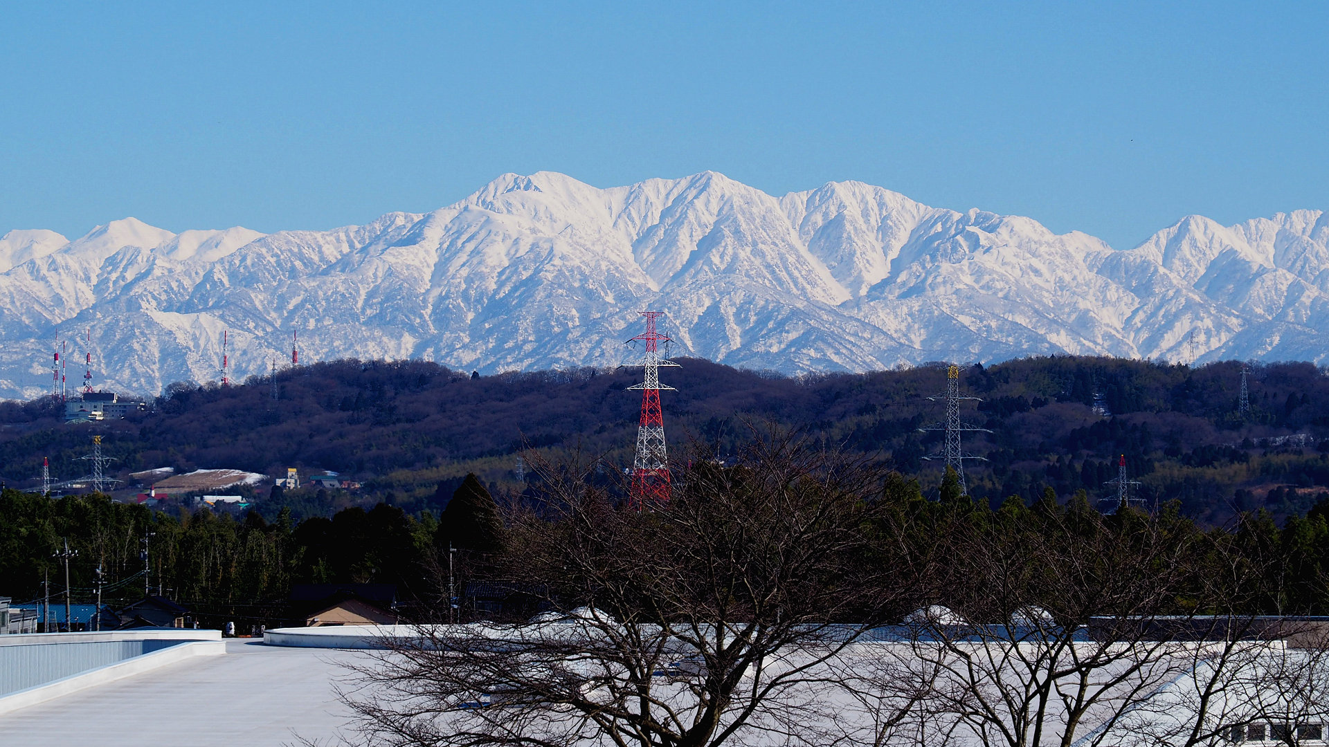 射水市黒河の富山県民公園太閤山ランドスポーツ広場から立山連峰 毛勝山、