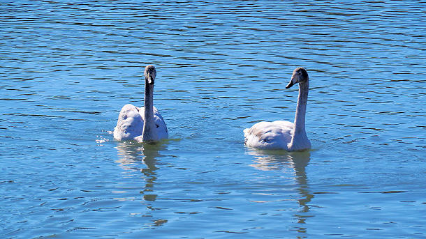 射水市青井谷にある白鳥飛来地石畑池のオオハクチョウの幼鳥