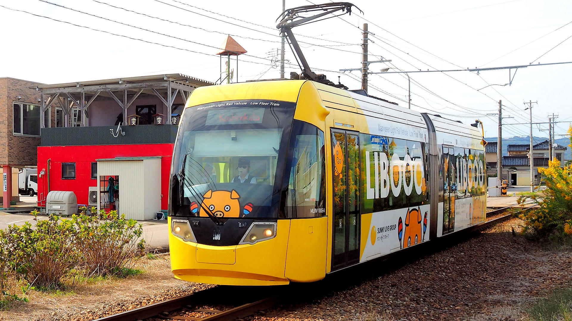万葉線第一イン新湊クロスベイ前駅を発車した1004越ノ潟行き