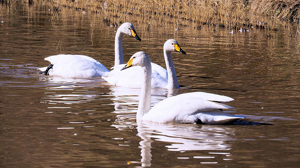 射水市青井谷地区にある石畑池隣接水田のオオハクチョウ