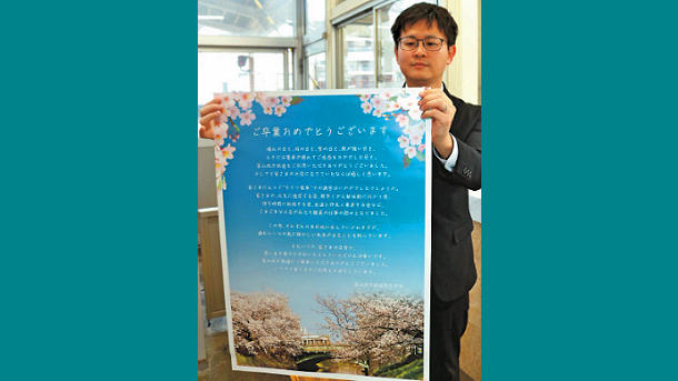 富山地方鉄道は、今春卒業する学生を祝うメッセージ入りのポスターを各