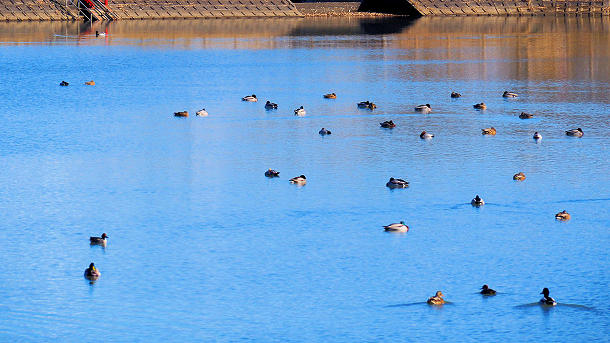 射水市の富山県民公園太閤山ランドの灌漑用溜池・女池のマガモ