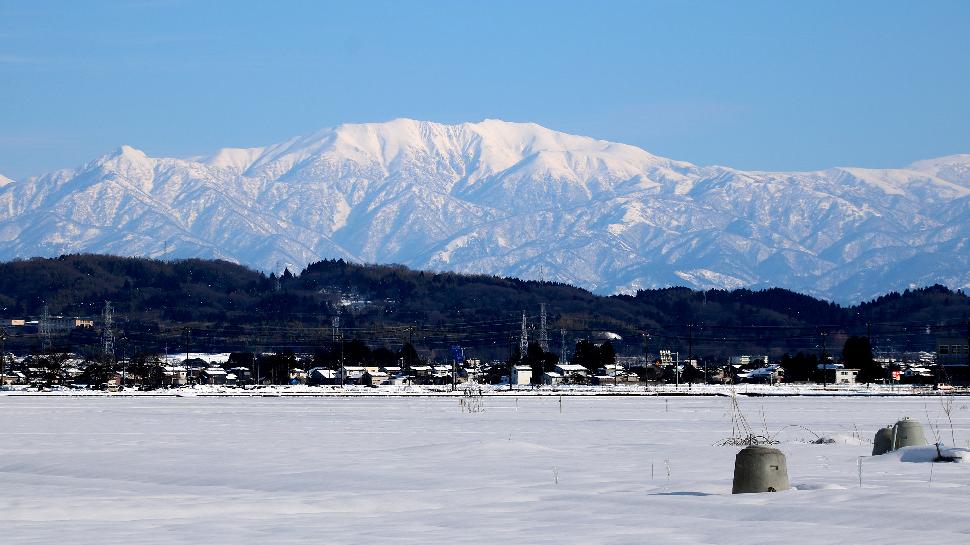 射水市戸破のあいの風とやま鉄道沿いから立山連峰薬師岳