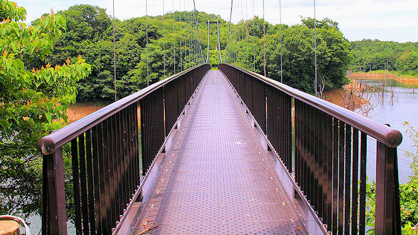 古洞ダム湖(古洞池)の遊歩道に架かる吊橋どんぐり橋