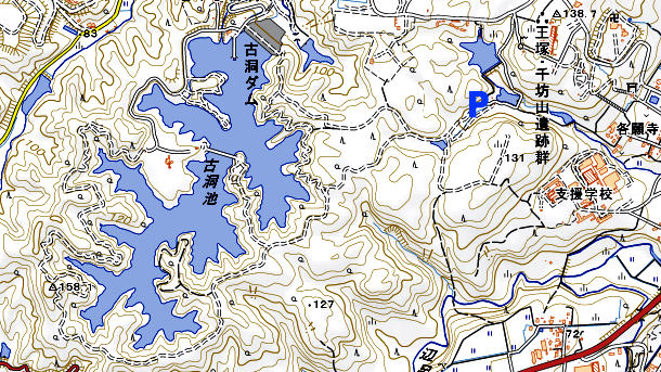 国土地理院の地図では古洞池一周と中池駐車からの遊歩道が確認できる。