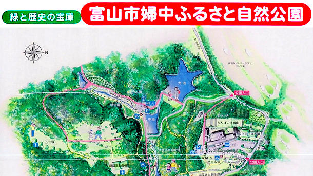 婦中ふるさと自然公園の中池駐車に車を止めて行く方法が古洞の森駐車場