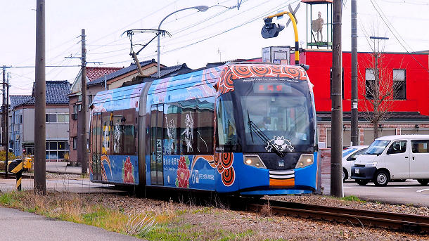 第一イン新湊クロスベイ前駅を発車した1005高岡駅行き