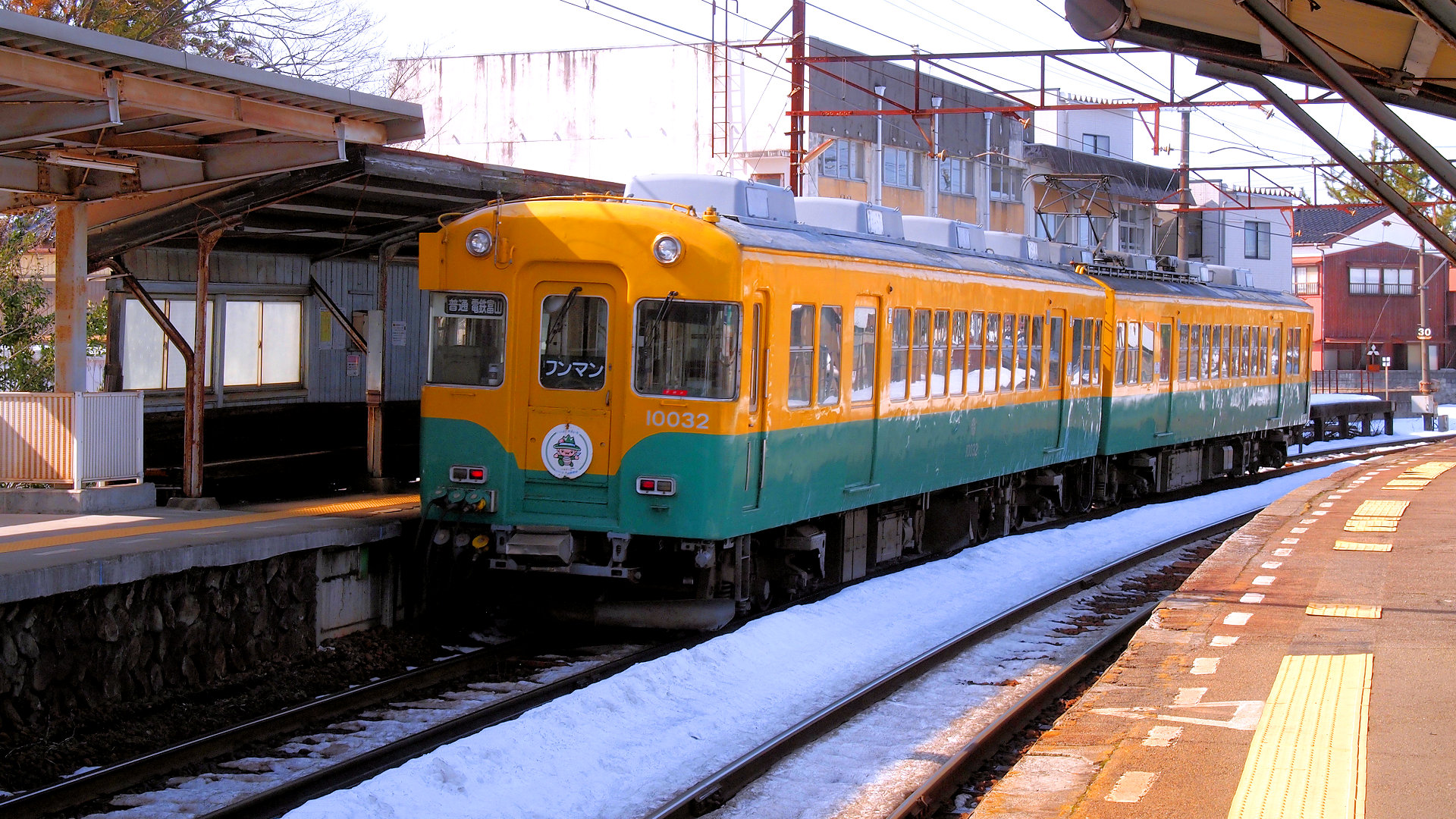 富山地方鉄道東新庄駅を発車した10030系電鉄富山行き 2025/02/16 撮影