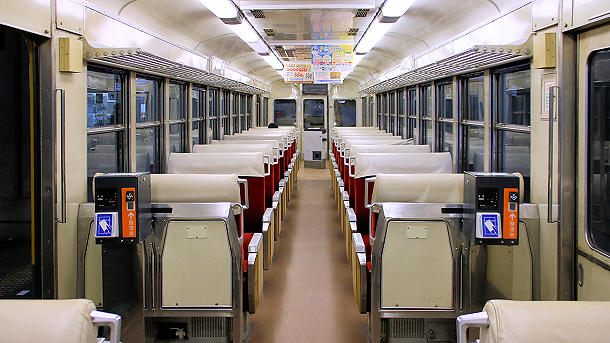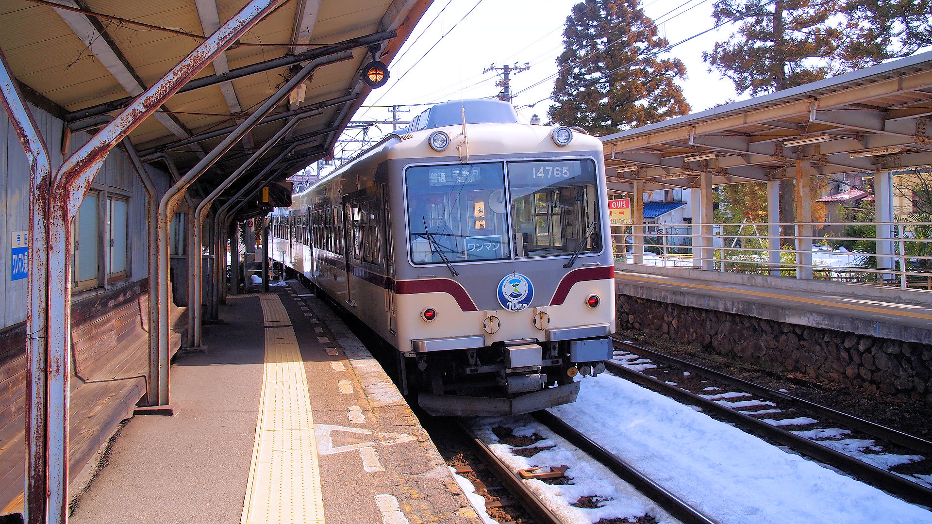 オフシーズンの立山駅に停車中の電鉄富山行き車内