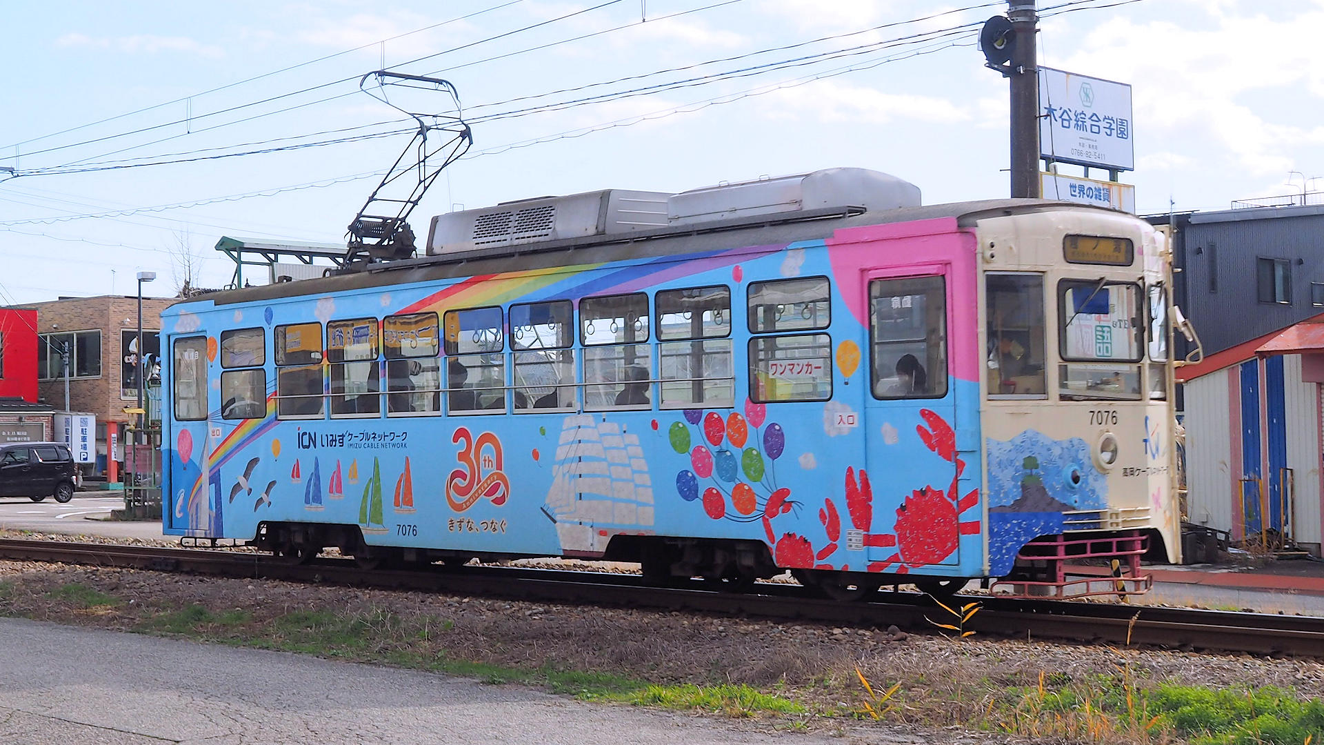 第一イン新湊クロスベイ前駅に到着する7076越ノ潟行き