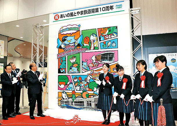 富山駅に記念壁画 あいの風鉄道開業10年、