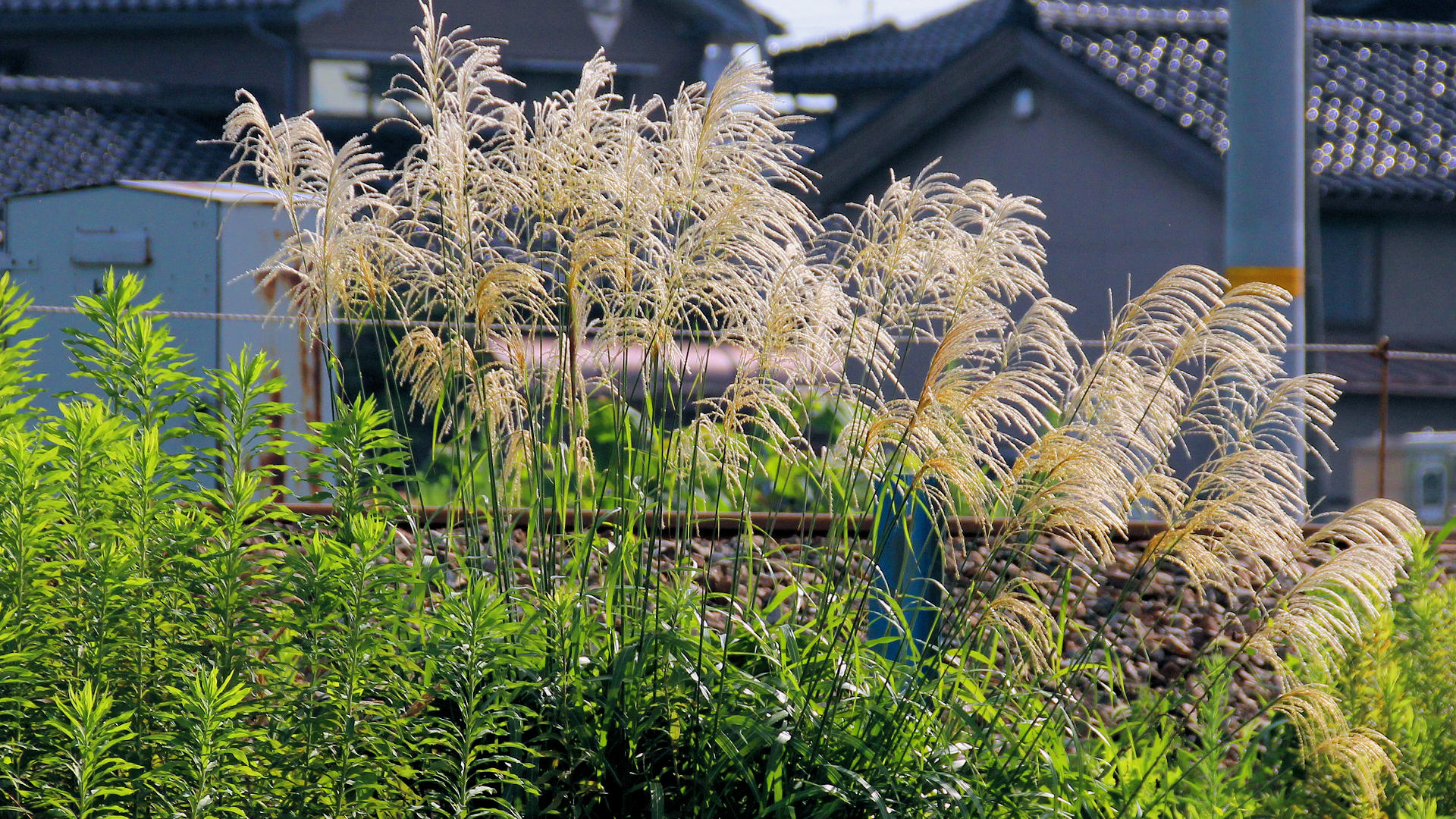 富山市西二俣のあいの風とやま鉄道沿いのススキ 2015/07/25 撮影